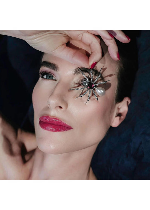 Broche élégante en forme d'araignée, ornée de perles et d'une finition métallique brillante. Parfaite pour vestes, écharpes ou pour apporter une touche sophistiquée à votre tenue.