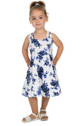 Dit schatje is gemaakt van katoen met lichte stretch en heeft een prachtig blauw bloemenpatroon. Haar dubbele bandjes en tikje hartvormige borstlijn maken haar allesbehalve saai! Ze loopt vanaf de taille uit in een zwierig rokje en sluit met een rits aan de achterkant.