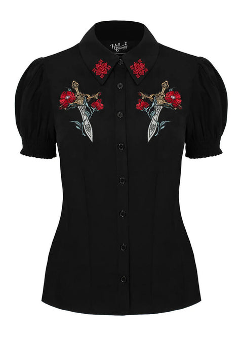Hell Bunny Elyse Sword 40's Blouse Zwart