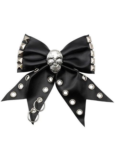 Kreepsville Nœud pour Cheveux Punk Tête de Mort et Rivets — Noir
